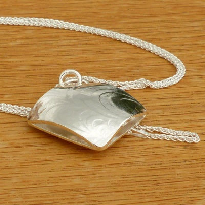 Britannia Silver Cushion Necklace leaf swirl design - one of a kind